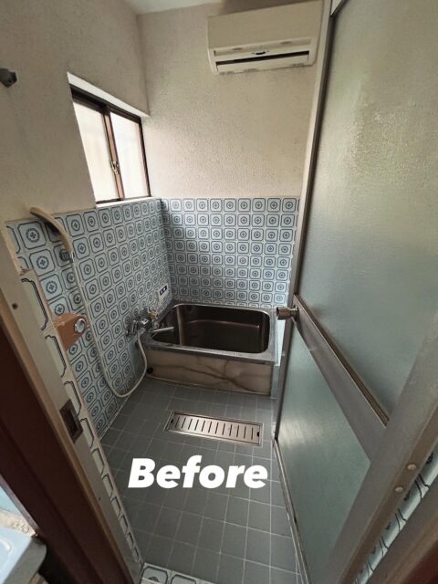 施工前は、よくあるタイル貼りの浴室でした。